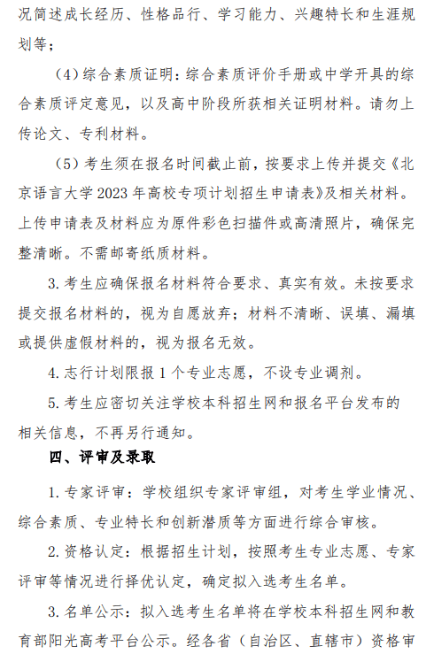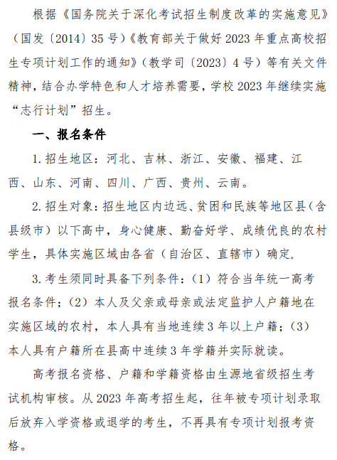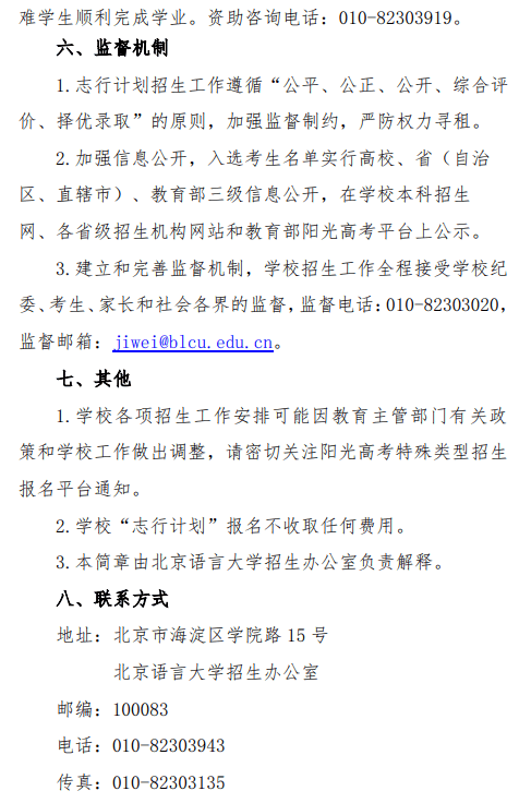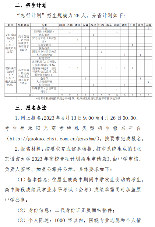北京语言大学2023年“志行计划”高校专项招生简章